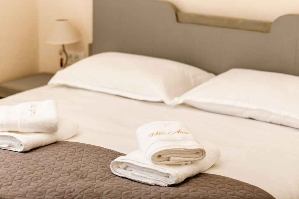 - Room with a double bed and kitchenette (induction hob, sink, microwave oven, mini fridge, kettle, coffee machine)