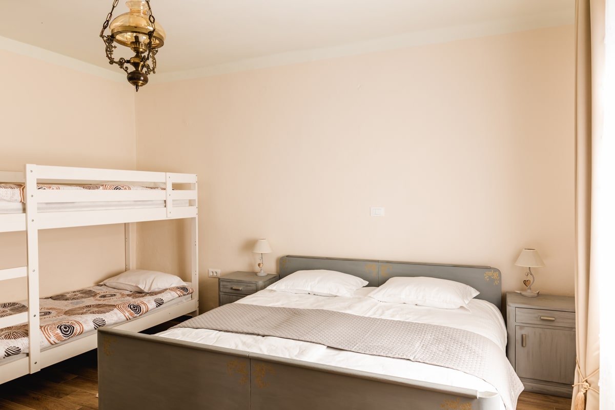 - Double room (double bed) and bunk bed