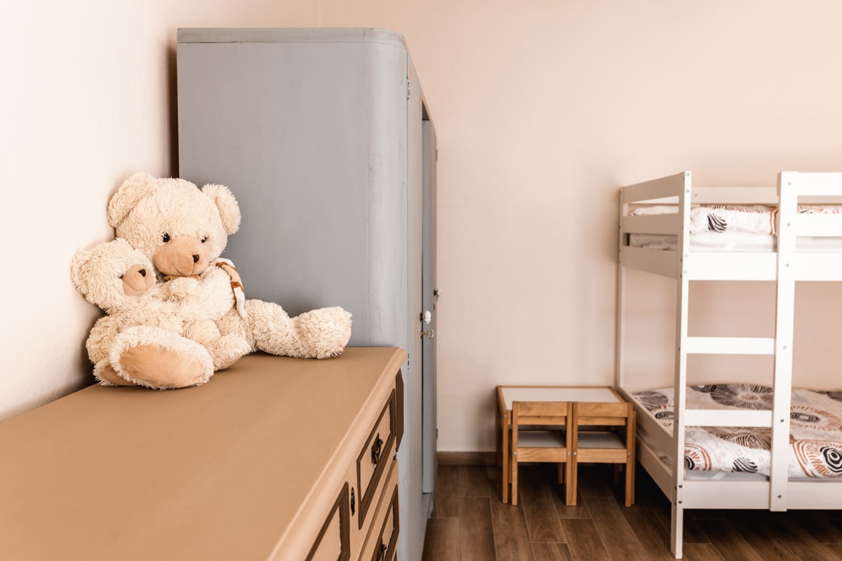 - dvoposteljna soba (zakonska postelja), ter pogradom